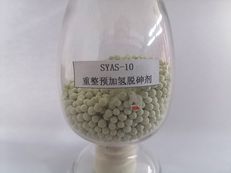 SYAS-10重整預(yù)脫砷催化劑采用了經(jīng)特殊工藝制備的載體,添加了特殊的助劑,再用活性組元的鹽類浸漬載體,經(jīng)干燥、焙燒制成SYAS-10重整預(yù)脫砷催化劑。該劑是一種性能良好的雙功能催化劑。它不僅對砷具有優(yōu)異的加氫脫除及吸附性能,而且對有機(jī)硫亦具有良好的加氫轉(zhuǎn)化能力,甚至當(dāng)砷容達(dá)到17%以上時(shí),仍保持較好的加氫脫硫活性。該劑在空速為12hr-1的條件下對石腦油等輕質(zhì)餾份油的脫砷、脫硫仍具有很好的活性。