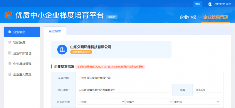 山東久碩環(huán)??萍加邢薰?,通過審核成為創(chuàng)新型中小企業(yè)
