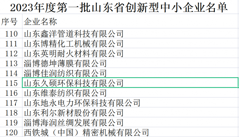 山東久碩環(huán)保科技有限公司,通過審核成為創(chuàng)新型中小企業(yè)